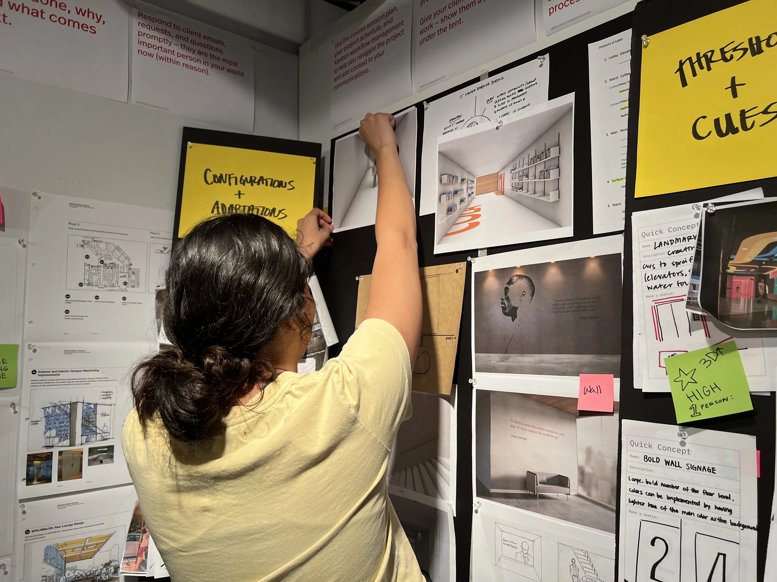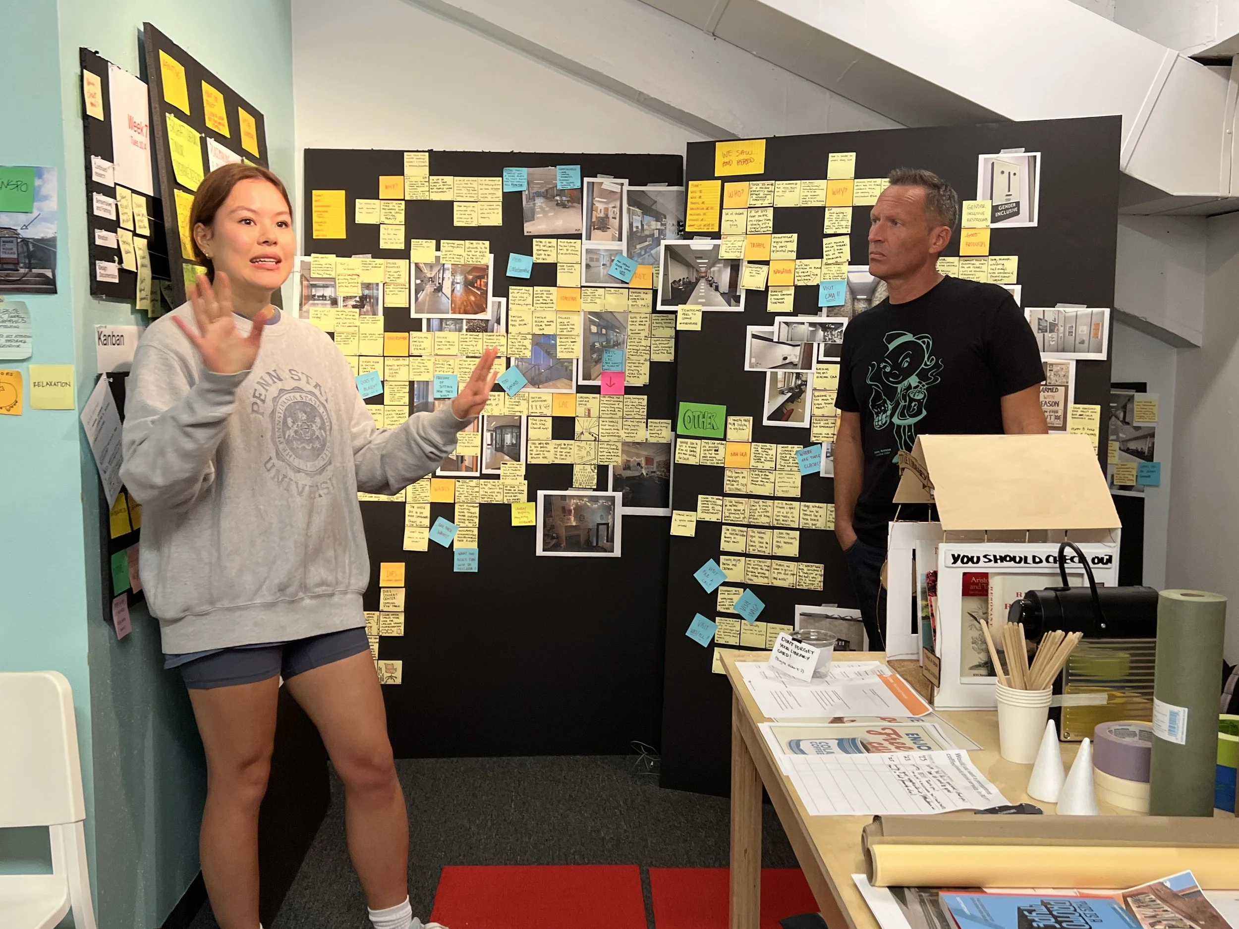 Our field research was primarily observational, included interviews with students, faculty, and staff, and required us to immerse ourselves in the experience of using and visiting the buildings. Some discoveries were especially meaningful and inspired a few of our ideas.